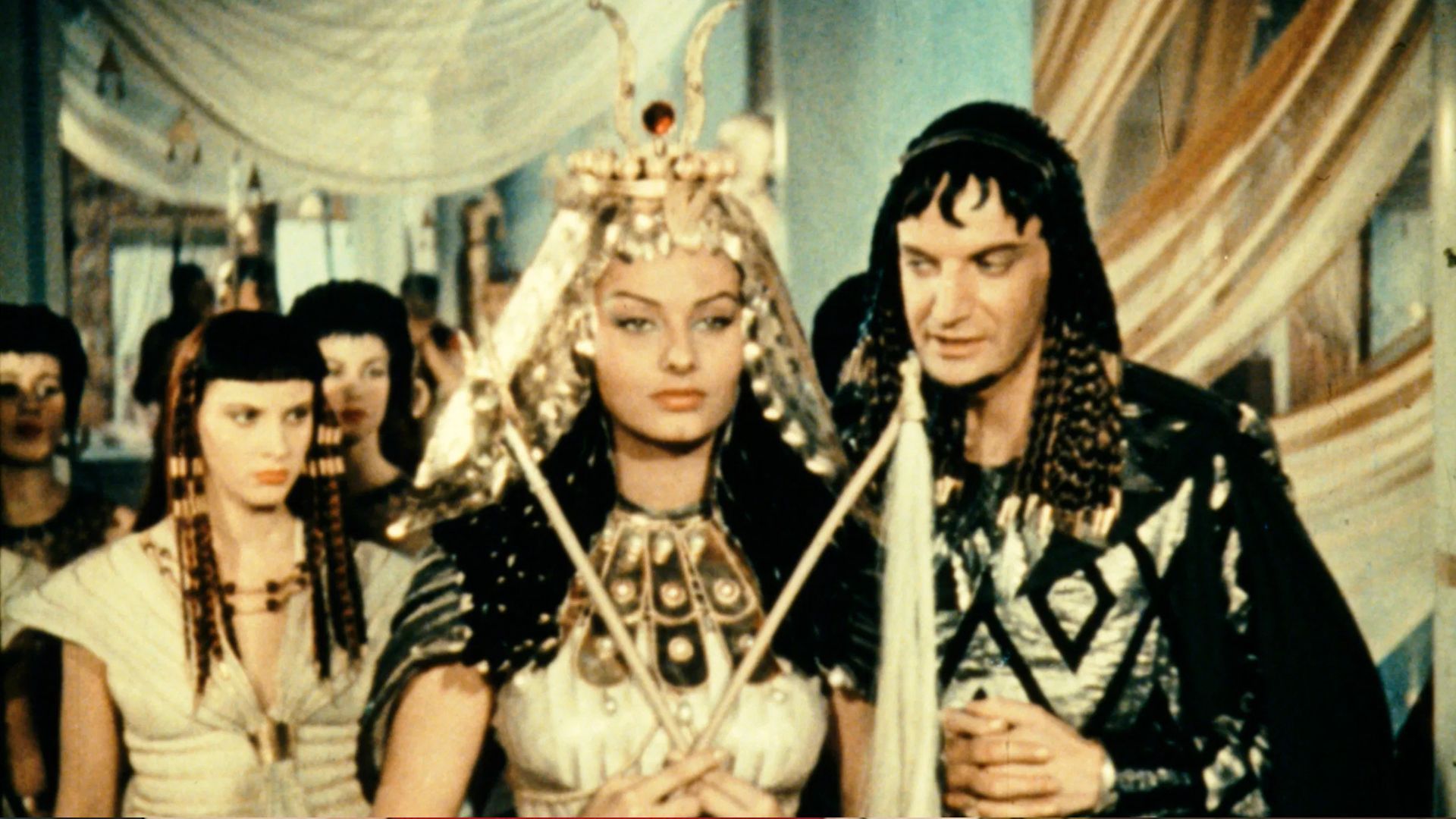 Фильм показывает Клеопатру, имеющую тайную связь с одним из стражей Марка Антония, который затем был отравлен, чтобы сохранить эту встречу в секрете. Фильм изображает Клеопатру как легендарную соблазнительницу, покорившую могущественных римлян своей красотой. Он визуально ошеломляющий, с впечатляющими декорациями и костюмами, и София Лорен даёт прекрасное исполнение в роли Клеопатры.