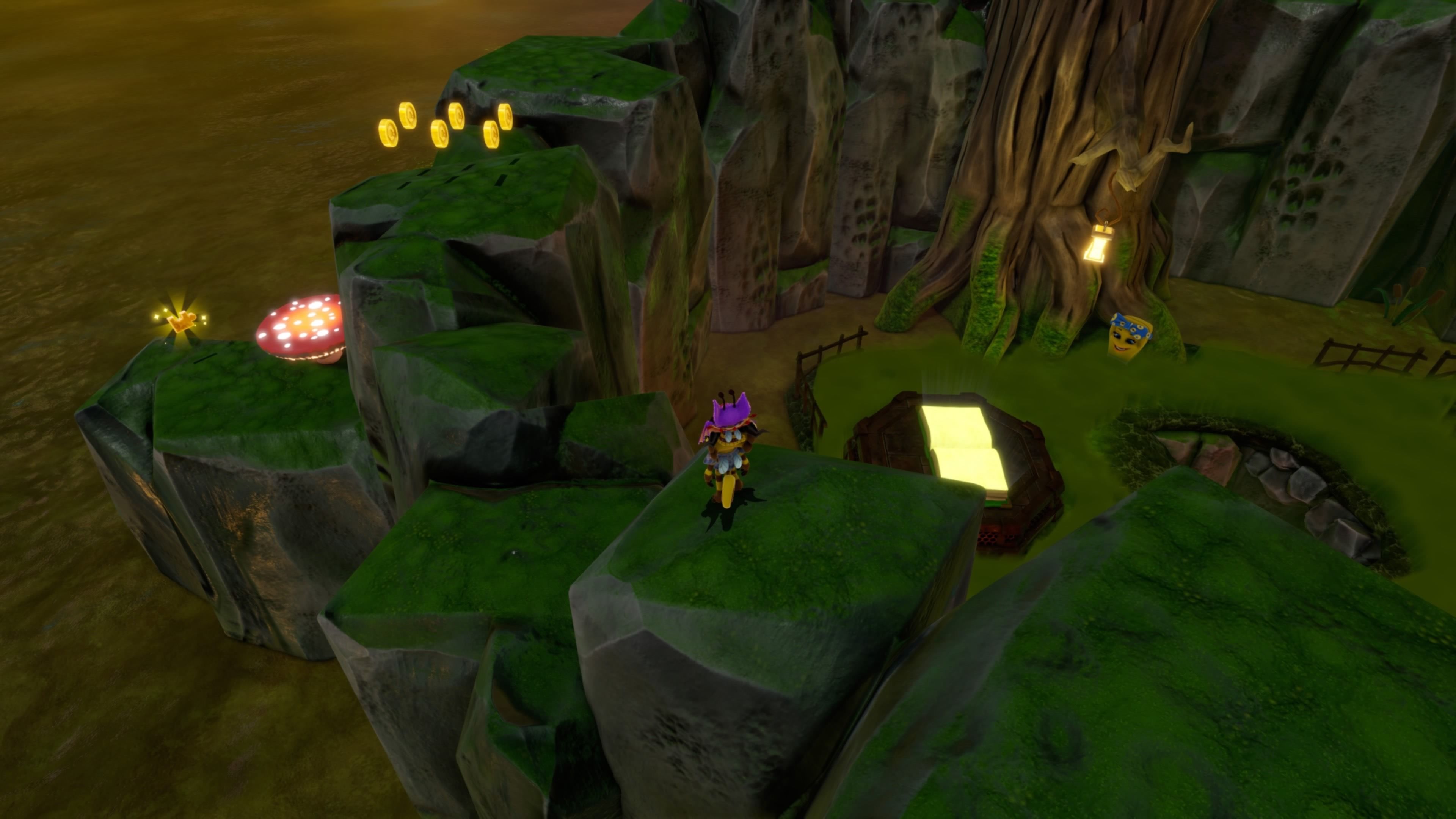 Сразу за книгой, с которой ты начал, ты найдёшь небольшую платформу. На ней находится упругий гриб и следующая часть Паджи.