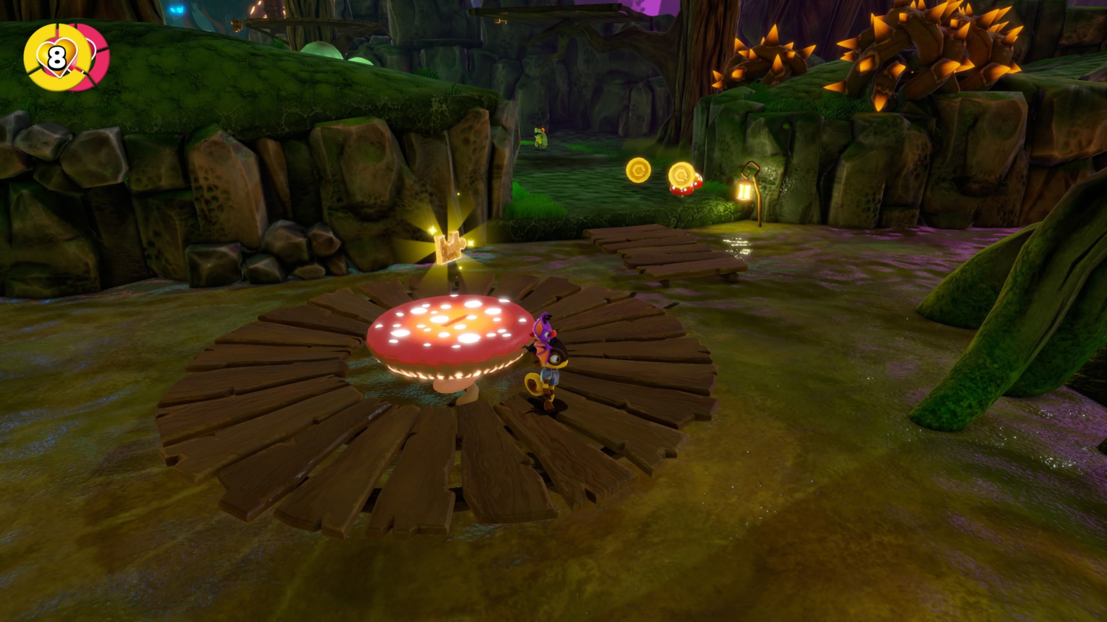Прямо между этими двумя синими грибами, которые соприкасаются, вы увидите сверкающее золотое пятно на земле. Активируйте его ударом «Buddy Slam», чтобы получить следующую часть!